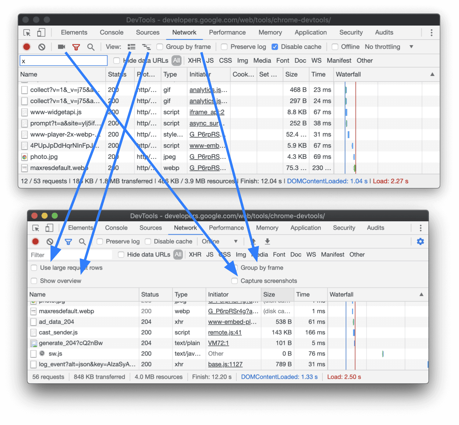 W panelu Sieć występował wcześniej problem z użytecznością, ponieważ opcje takie jak menu ograniczania przepustowości były niedostępne, gdy okno narzędzi deweloperskich było wąskie. Aby rozwiązać ten problem i uprościć panel Sieć, przenieśliśmy kilka rzadziej używanych opcji do nowego panelu Ustawienia sieci.![]()